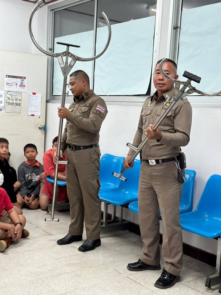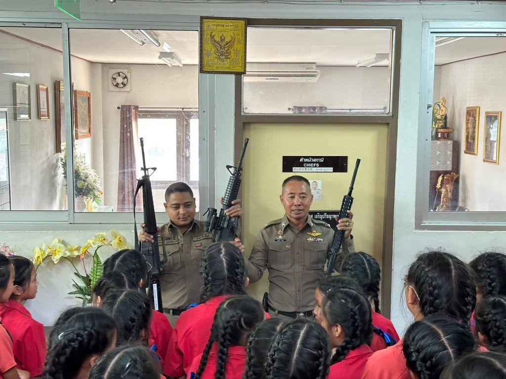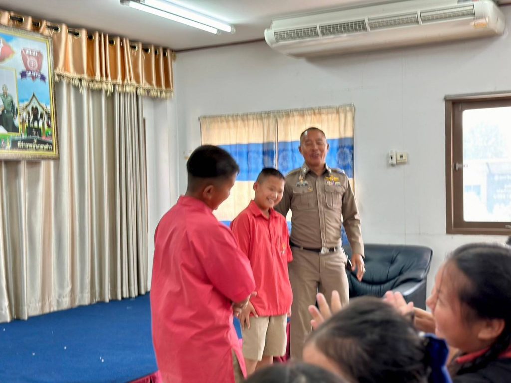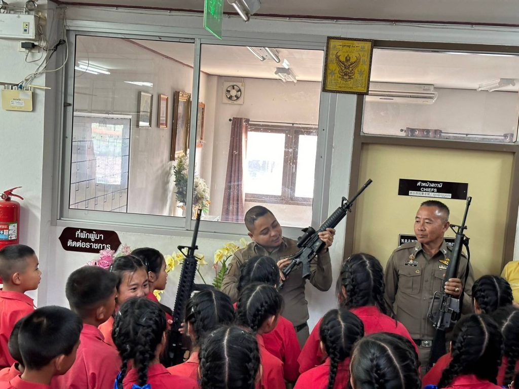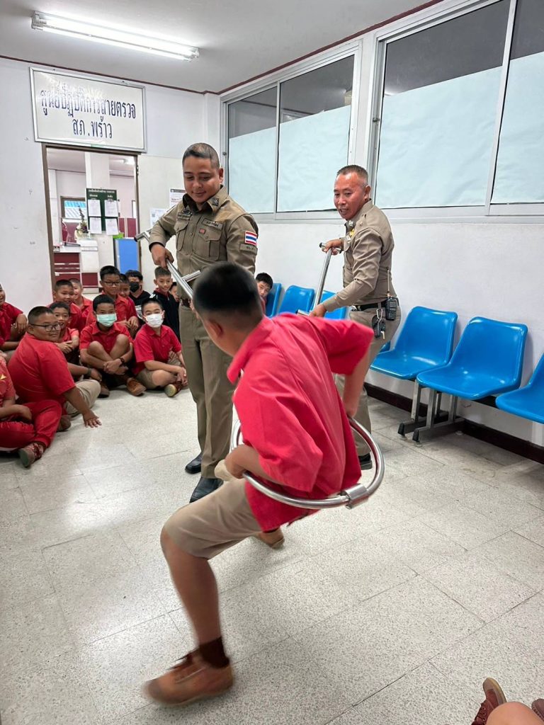 วันที่ 18 ก.พ. 2568 เวลา 15.00 น. – 16.15 น. ได้มีคณะครู และนักเรียนในโครงการ D.a.r.e. โรงเรียนบ้านแจ่งกู่เรือง ชั้น ป.521 ถึง ป.5/3 จำนวน 77 คน ได้มาทัศนศึกษาเรียนรู้นอกสถานที่ ณ สภ.พร้าว ได้มี ร.ต.ต.พัลลภ วันดี ให้การบรรยายให้ความรู้ เกี่ยวกับ วิธีดูแลรับผิดชอบชีวิตตนเอง และการปฏิบัติงานของตำรวจ พร้อมทั้งมีการสาธิตการควบคุมคนวิกลจริตคลุ้มคลั่ง โดยมี ร.ต.ท.สมาน อำนาคะและ ส.ต.ท.ชานนท์ คุรุธรรมมานนท์ ช่วยในการสาธิต