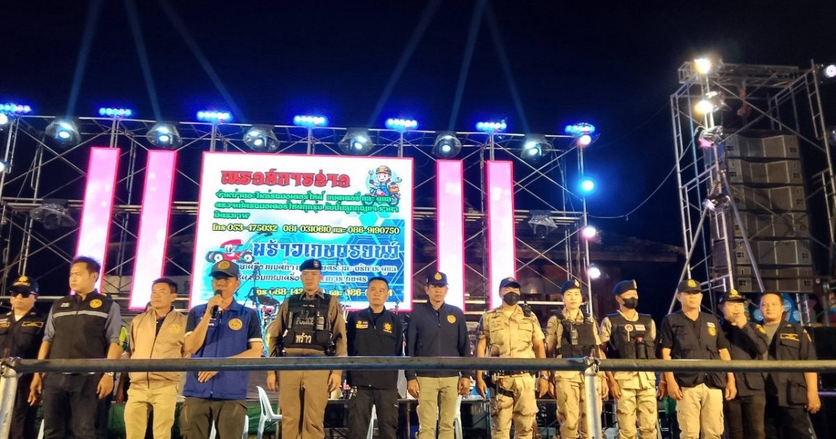 ร่วมกับเจ้าพนักงานฝ่ายปกครอง ,กำนัน ,ผู้ใหญ่บ้าน , อ.พร้าว รักษาความสงบเรียบร้อยในงานปอยหลวง วัดขามสุ่มเวียง ต.เวียง อ.พร้าว จ.เชียงใหม่