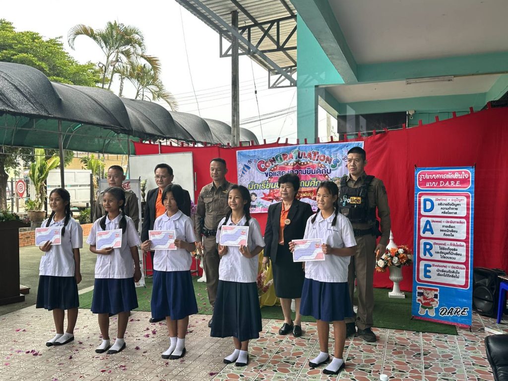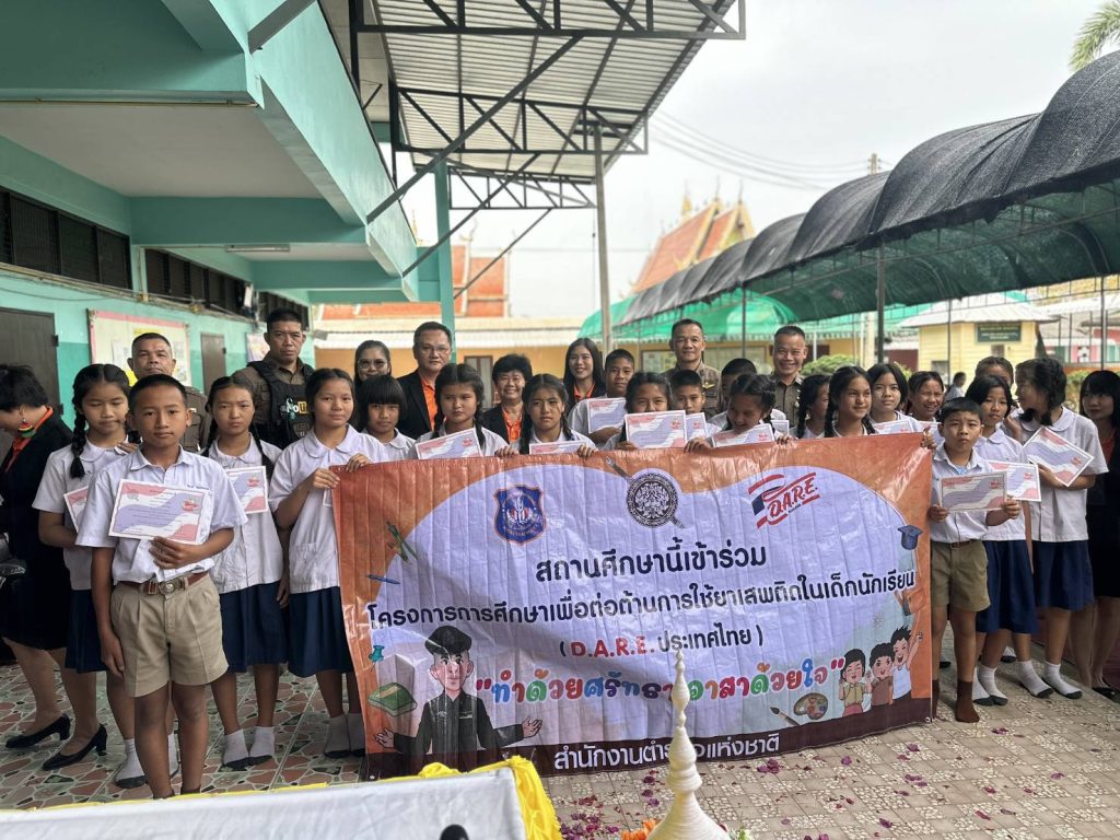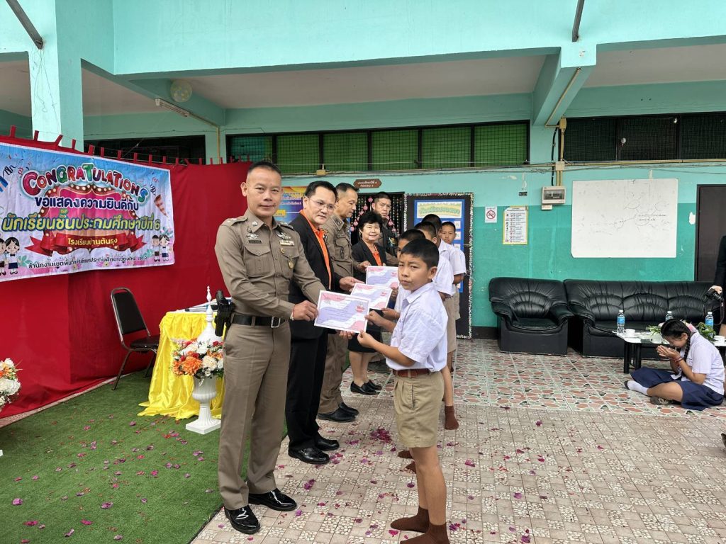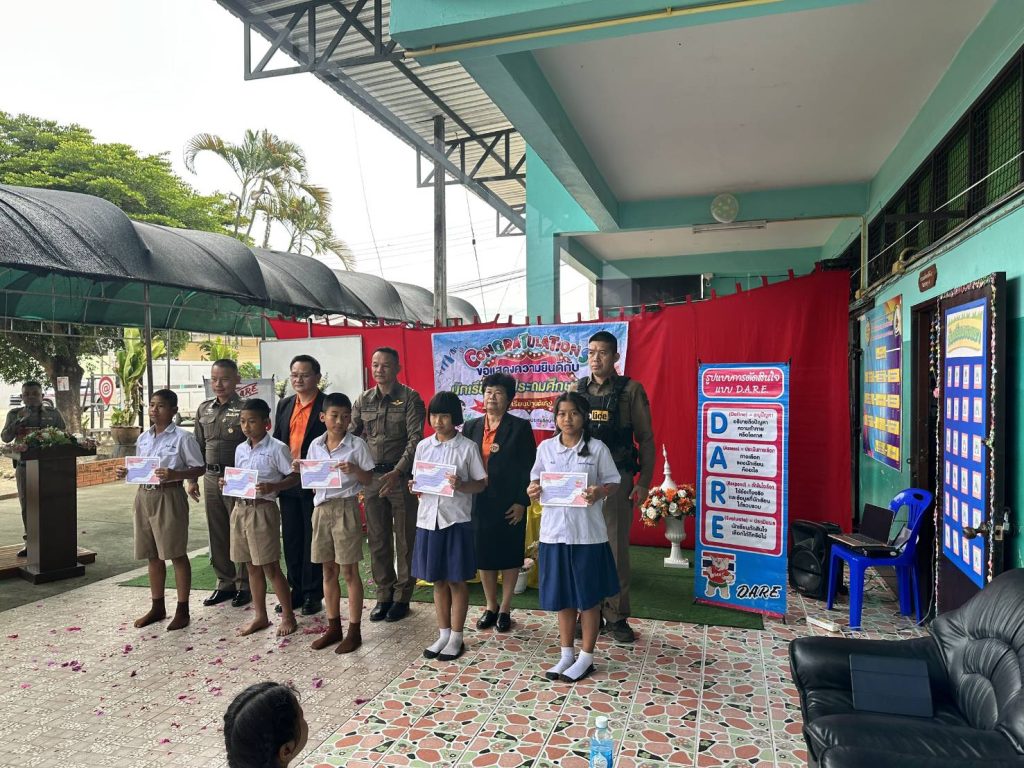 ***โครงการการศึกษาเพื่อต่อต้านการใช้ยาเสพติดในเด็กนักเรียน D.A.R.E.ประเทศไทย ของ สถานีตำรวจภูธรพร้าว จังหวัดเชียงใหม่ *** วันที่ 20 มี.ค.2568 เวลา 10.00-11.30 น.โดยการอำนวยการของ พ.ต.อ.สหพร เอียการนา ผกก.สภ.พร้าว ได้มอบหมายให้ พ.ต.ท.อำนาจ ธรรมสร รอง ผกก.ป.สภ.พร้าว พ.ต.ต.ประดิษฐ์ ปิยะจันทร์ สวป.สภ.พร้าว ร.ต.อ.นิรันดร์ คำสิงห์ รอง สวป.สภ.พร้าว ร.ต.ท.ถาวร ดวงเทศ รอง สว.(ป).ฯ ด.ต.เจษฎา มหาชัย ผบ.หมู่.(ป)ฯ ร่วมกับ นายปิยะพงศ์ เชาว์ประเสริฐ ผอ.รร.บ้านต้นรุง พร้อมคณะครู ได้ร่วมกันจัดพิธีมอบใบประกาศนียบัตร และกล่าวปิดโครงการฯแก่นักเรียนชั้นประถมปีที่ 5 จำนวน 29 คน เป็นไปด้วยความเรียบร้อย มีความร่วมมือระหว่างหน่วยงานเป็นอย่างดี