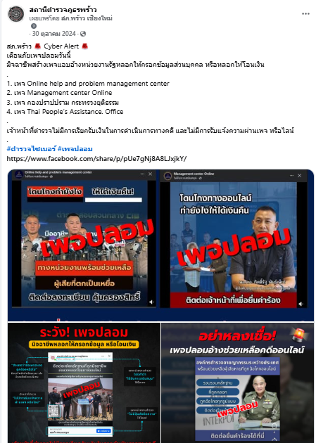 มิจฉาชีพสร้างเพจแอบอ้างหน่วยงานรัฐหลอกให้กรอกข้อมูลส่วนบุคคล หรือหลอกให้โอนเงิน
