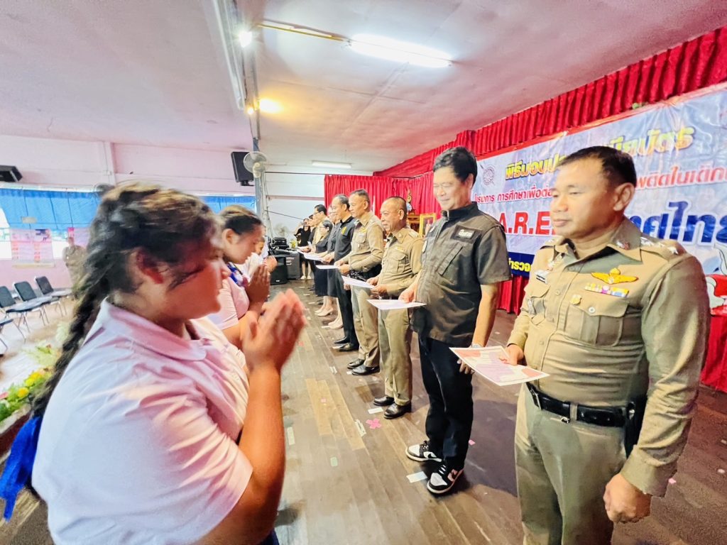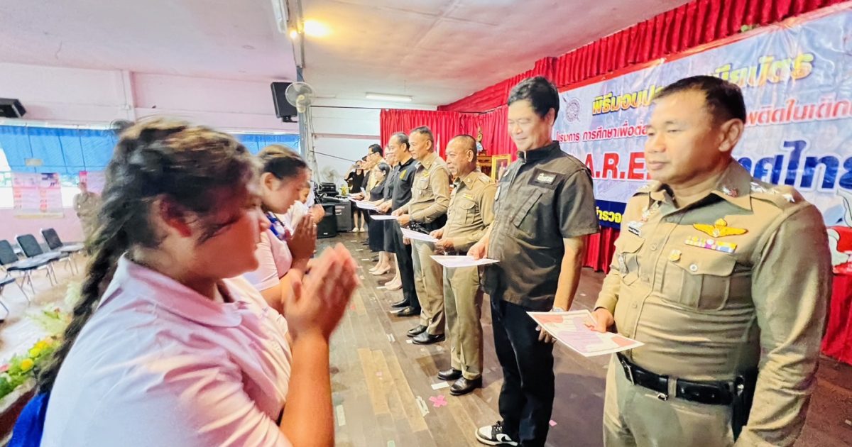 พ.ต.อ.พงษ์ธรรศ เจริญปรีชญาพงษ์ ผกก.สภ.พร้าว เป็นประธาน พร้อมด้วย พ.ต.ท.ชัยนันท์ ศังขานนท์ รอง ผกก.สส.สภ.พร้าว , พ.ต.ท.นพดล ตันมาดี รอง ผกก.ป.สภ.พร้าว , พ.ต.ต.ประดิษฐ์ ปิยะจันทร์ สวป.สภ.พร้าว , พ.ต.ต.ธีระศักดิ์ ธัญธราดล สว.สส.สภ.พร้าว , พ.ต.ท.ชานนท์สถิต วราสงวนศิลป์ สว.อก.สภ.พร้าว ร่วมพิธีมอบใบประกาศนียบัตร โครงการการศึกษาเพื่อต่อต้านการใช้ยาเสพติดในเด็กนักเรียน (D.A.R.E.)ณ หอประชุม โรงเรียนแจ่งกู่เรือง ต.เวียง อ.พร้าว จ.เชียงใหม่