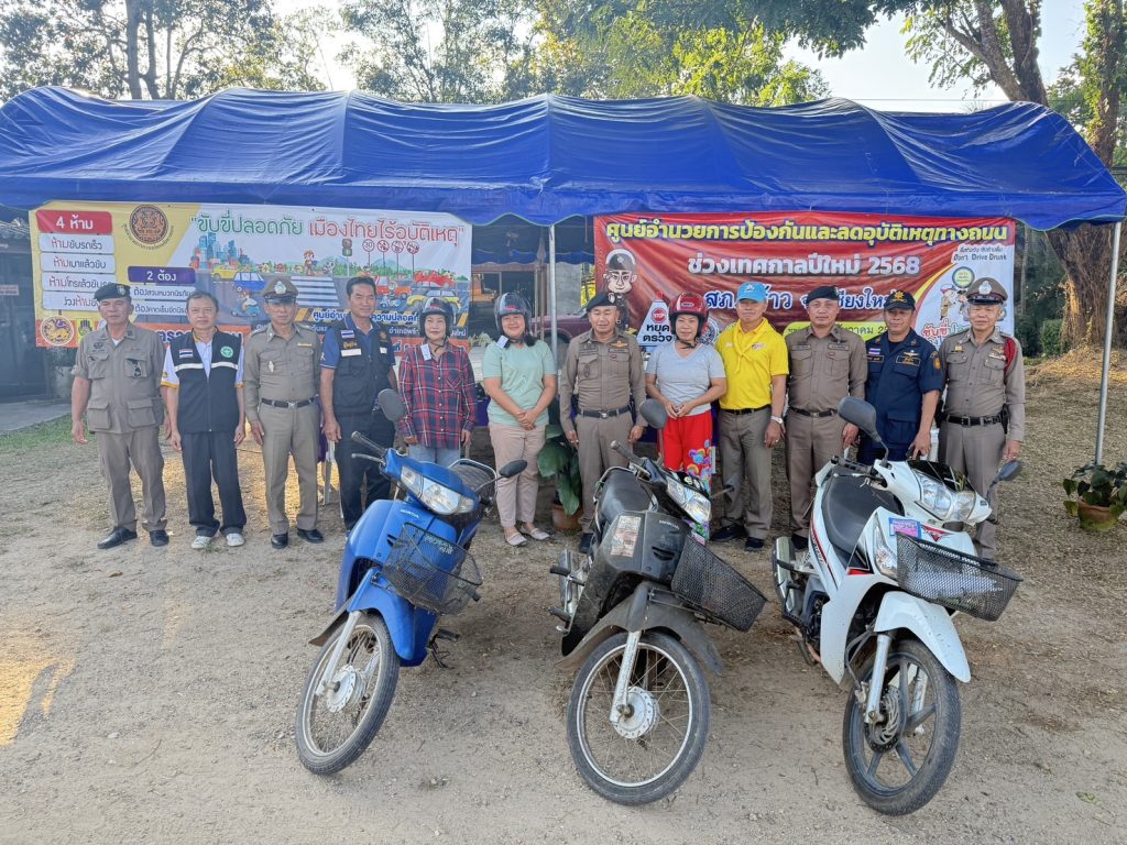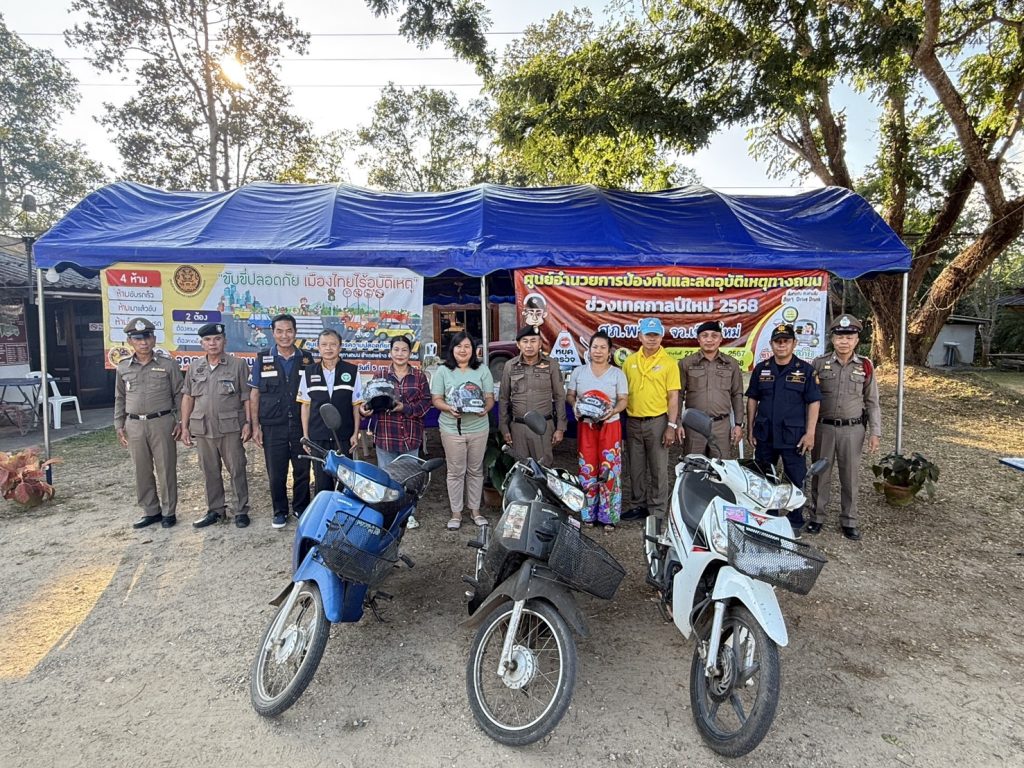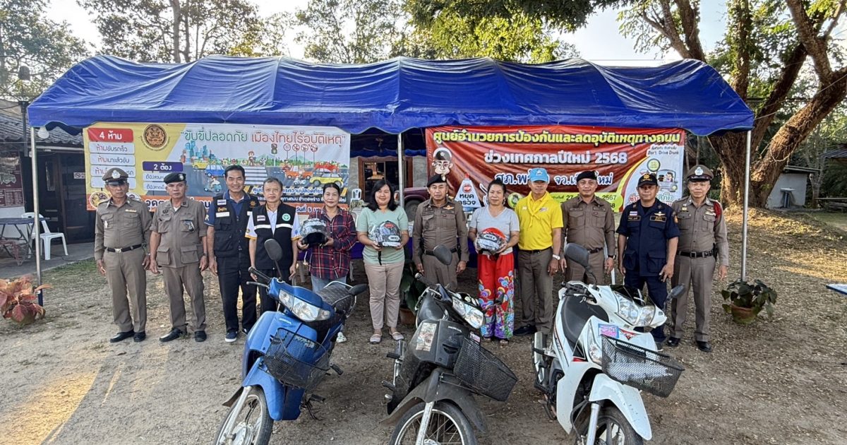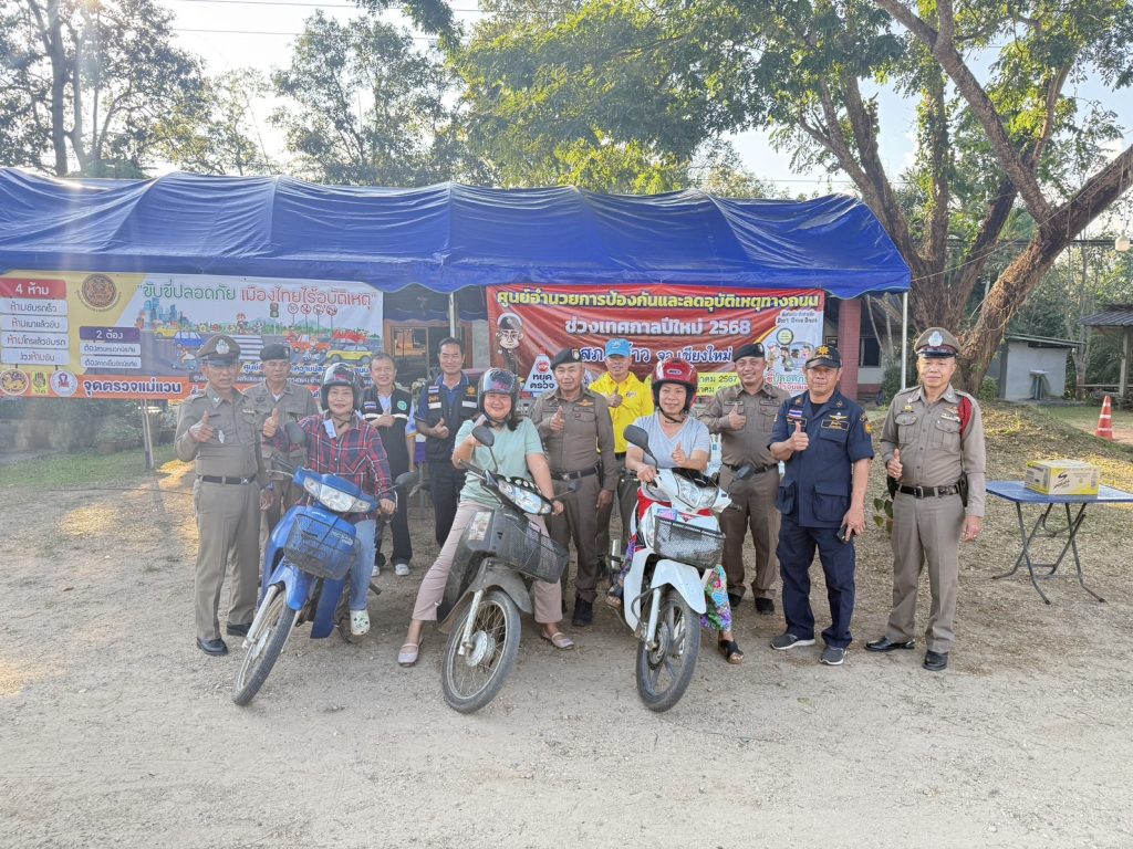 พ.ต.อ.พงษ์ธรรศ เจริญปรีชญาพงษ์ ผกก.สภ.พร้าว พร้อมด้วย พ.ต.ท.นพดล ตันมาดี รอง ผกก.ป.สภ.พร้าว , พ.ต.ท.ชานนท์สถิต วราสงวนศิลป์ สว.อก.สภ.พร้าว ร่วมกับโครงการจิตอาสา(จราจร)รณรงค์การขับขี่ปลอดภัยสวมหมวกนิรภัยเพื่อลดอุบัติเหตุจราจรทางบกในช่วงเทศกาลปีใหม่ พ.ศ.2568 โดยมอบหมวกนิรภัยให้กับประชาชนเพื่อรณรงค์ ประชาสัมพันธ์ สร้างความตระหนักรู้ในเรื่องกฎหมายจราจรและความปลอดภัยในการขับขี่ยานพาหนะ การใช้รถใช้ถนนในห้วงเทศกาลปีใหม่ 2568 ณ จุดตรวจบูรณาการแม่แวน ต.แม่แวน อ.พร้าว จ.เชียงใหม่