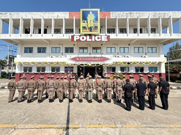 พ.ต.อ.พงษ์ธรรศ เจริญปรีชญาพงษ์ ผกก.สภ.พร้าว พร้อมด้วย พ.ต.ท.ชัยนันท์ ศังขานนท์ รอง ผกก.สส.สภ.พร้าว , พ.ต.ท.นพดล ตันมาดี รอง ผกก.ป.สภ.พร้าว , พ.ต.ต.ประดิษฐ์ ปิยะจันทร์ สวป.สภ.พร้าว , พ.ต.ต.ธีระศักดิ์ ธัญธราดล สว.สส.สภ.พร้าว เรียกแถวกำลังเจ้าหน้าที่ตำรวจสถานีตำรวจภูธรพร้าว ชี้แจงภารกิจรักษาความปลอดภัย พลเอกกัมปนาท รุดดิษฐ์ องคมนตรี เดินทางมาปฏิบัติงานในพื้นที่มูลนิธิโครงการหลวงแม่ปูนหลวง ตำบลแม่แวน อำเภอพร้าว จังหวัดเชียงใหม่