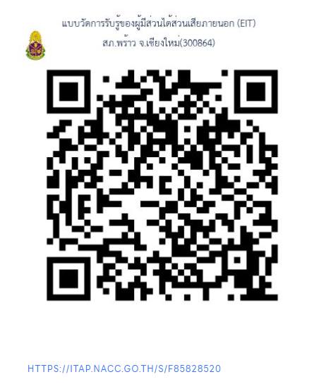 เชิญชวนพี่น้องประชาชน ร่วมประเมินแบบวัดการรับรู้ของผู้มีส่วนได้เสียภายนอก External Integrity and Transparency Assessment (EIT) 2025 การประเมินคุณธรรมและความโปร่งใสในการดำเนินงานของหน่วยงานภาครัฐ (ITA) ประจำปี 2568 ความเห็นท่าน จะถูกประมวลเเละใช้เป็นข้อมูลในการพัฒนาสถานีตำรวจภูธรพร้าว นำผลการประเมิณไปปรับปรุงแก้ไขขั้นตอนวิธีการปฏิบัติงานต่างๆที่เกี่ยวข้อง เพื่อลดโอกาส ลดความเสี่ยง ที่จะทำให้เกิดการทุจริตในหน่วยงานทั้งนี้ท่านสามารถประเมินผ่านคิวอาร์โค้ด หรือจุดบริการต่างๆในสถานีตำรวจภูธรพร้าว หรือทาง https://itap.nacc.go.th/s/F85828520 เริ่ม 1 ม.ค. 2568 – 30 มิ.ย. 2568