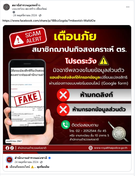 แจ้งเตือนสมาชิกฌาปนกิจสงเคราะห์ ตร. โปรดระวัง https://www.facebook.com/share/p/1CLyEnEo5j