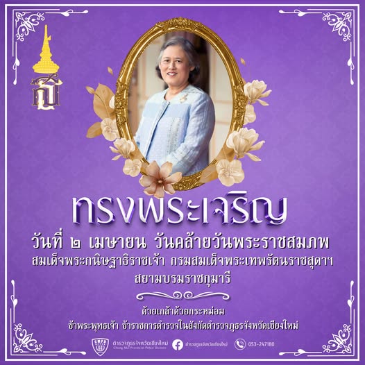 ๒ เมษายน ๒๕๖๘ วันคล้ายวันพระราชสมภพ สมเด็จพระกนิษฐาธิราชเจ้า กรมสมเด็จพระเทพรัตนราชสุดาฯ สยามบรมราชก