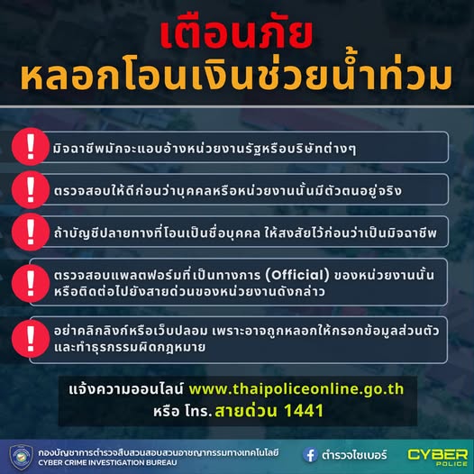 เตือนภัย หลอกโอนเงินช่วยน้ำท่วม https://www.facebook.com/share/p/12FVNekKz3S